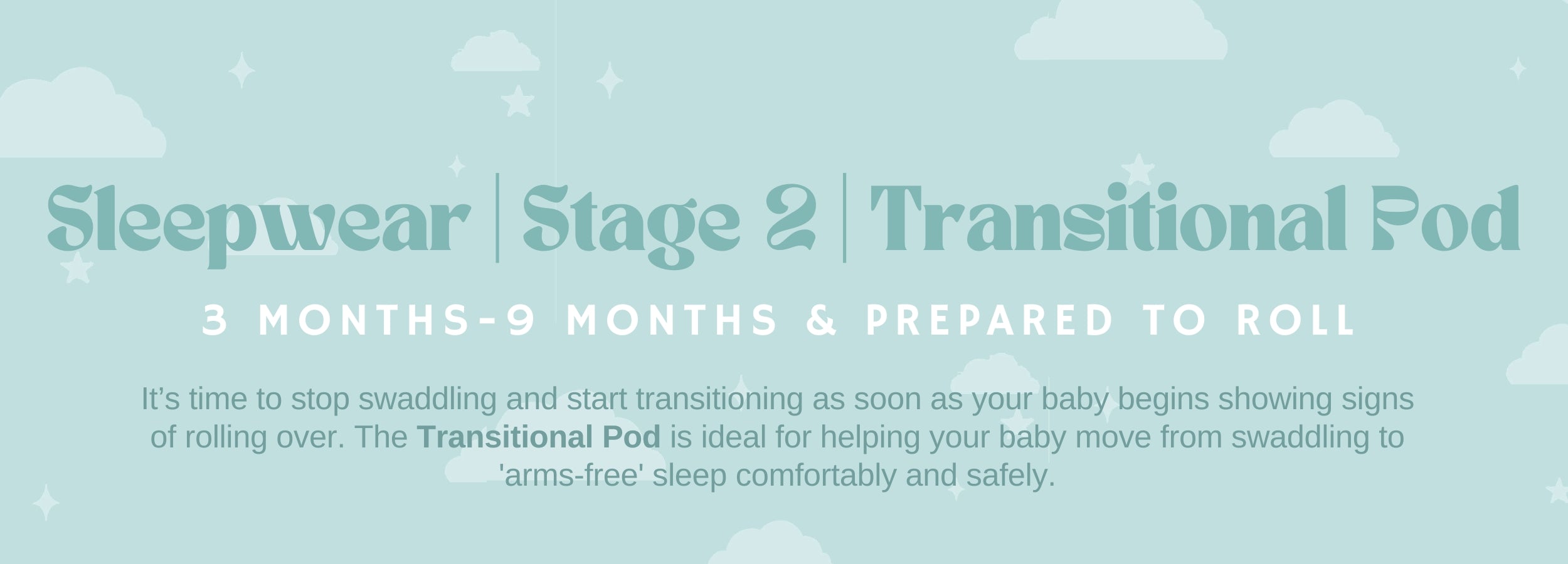 When a baby starts showing signs of rolling, it’s time to stop swaddling and transition them to 'arms-free' sleep. Our Transitional Pod offers the easiest way to make this shift, ensuring your baby transitions smoothly while maintaining their beloved sleep routine.