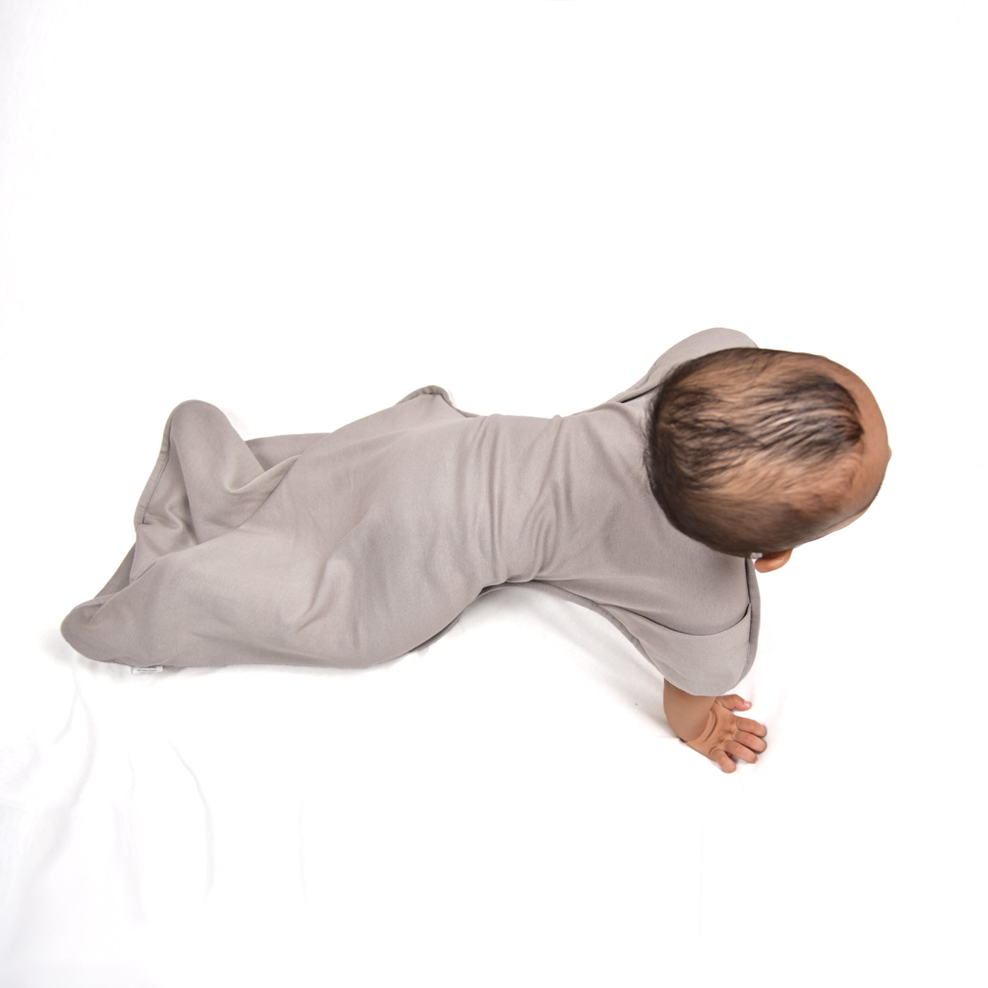 Regardless of the swaddling method you use, it’s essential to stop swaddling as soon as your baby shows signs of rolling over independently. At this point, transitioning to 'arms-free' sleeping becomes crucial, as your baby’s arms should no longer be restricted. This guideline applies to all forms of swaddling. By this stage, your baby’s startle reflex is likely to have diminished. The Transitional Pod is an excellent solution to help your baby move from swaddling to 'arms-free' independent sleep with ease.