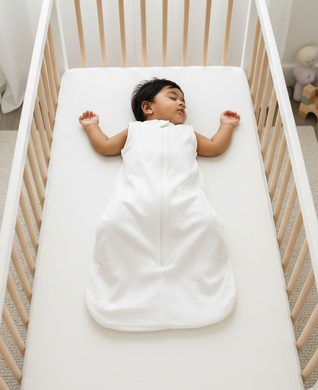 Not always. In rooms above 21°C (70°F), a sleeveless sleeping bag with appropriate layers underneath is enough. In cooler rooms, you can add sleeves or warmer underlayers. Always check your baby’s chest or neck—they should feel warm and dry, not sweaty.