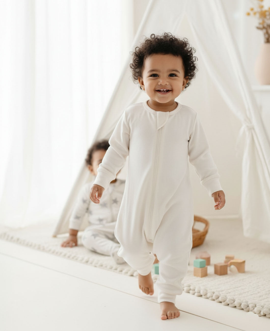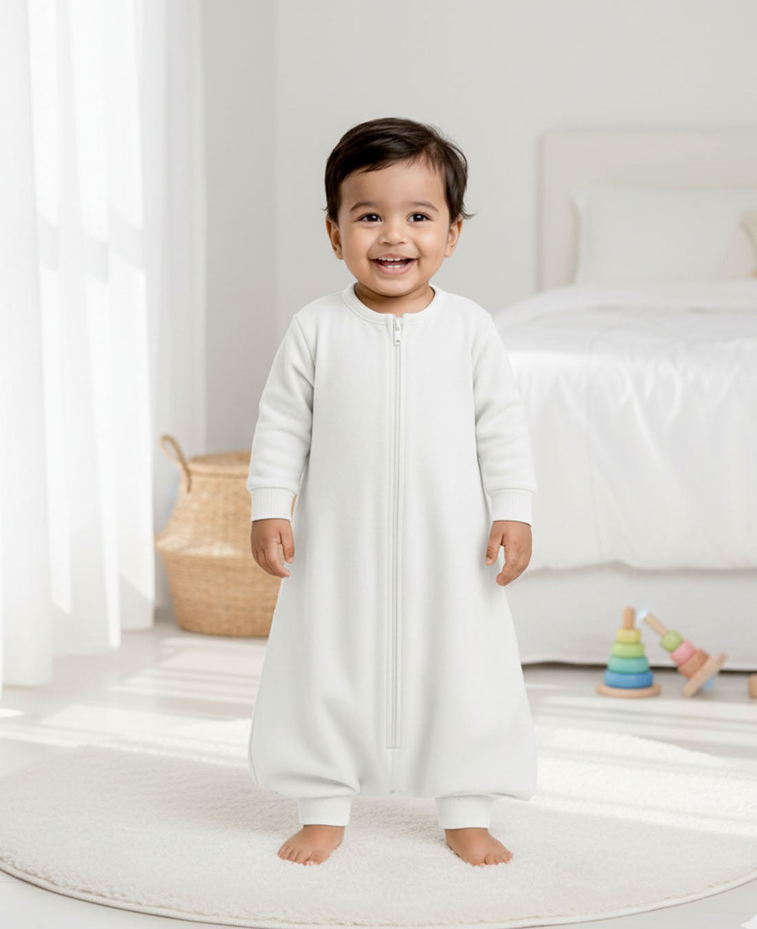 - Footie option – Convertible openings for feet, allowing toddlers to walk safely.
