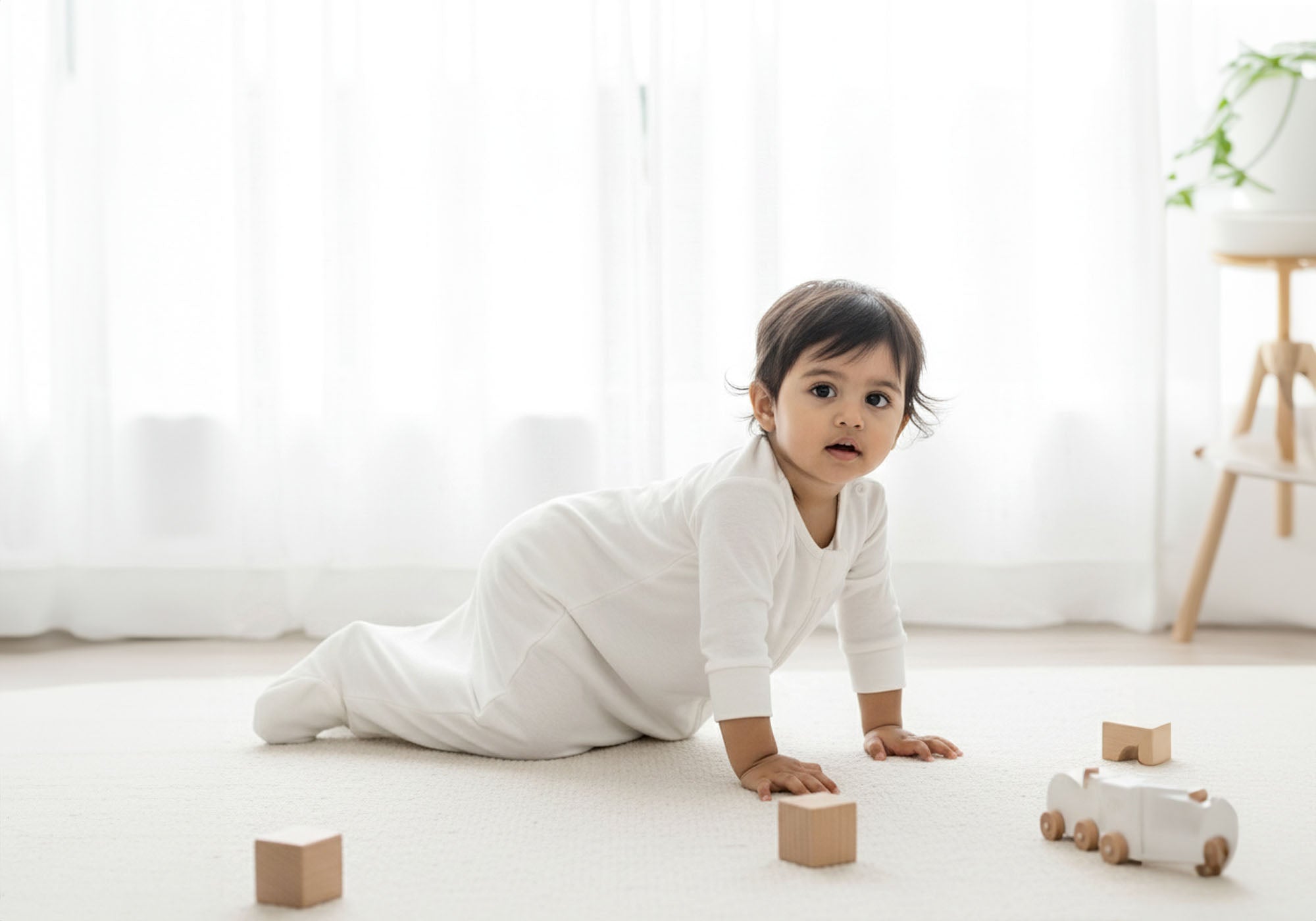 For cooler rooms, we recommend layering with a long-sleeve bodysuit or cotton pajamas. Always check your baby’s chest or neck to ensure they feel warm but not sweaty. Hands and feet may feel cool, which is normal.t.