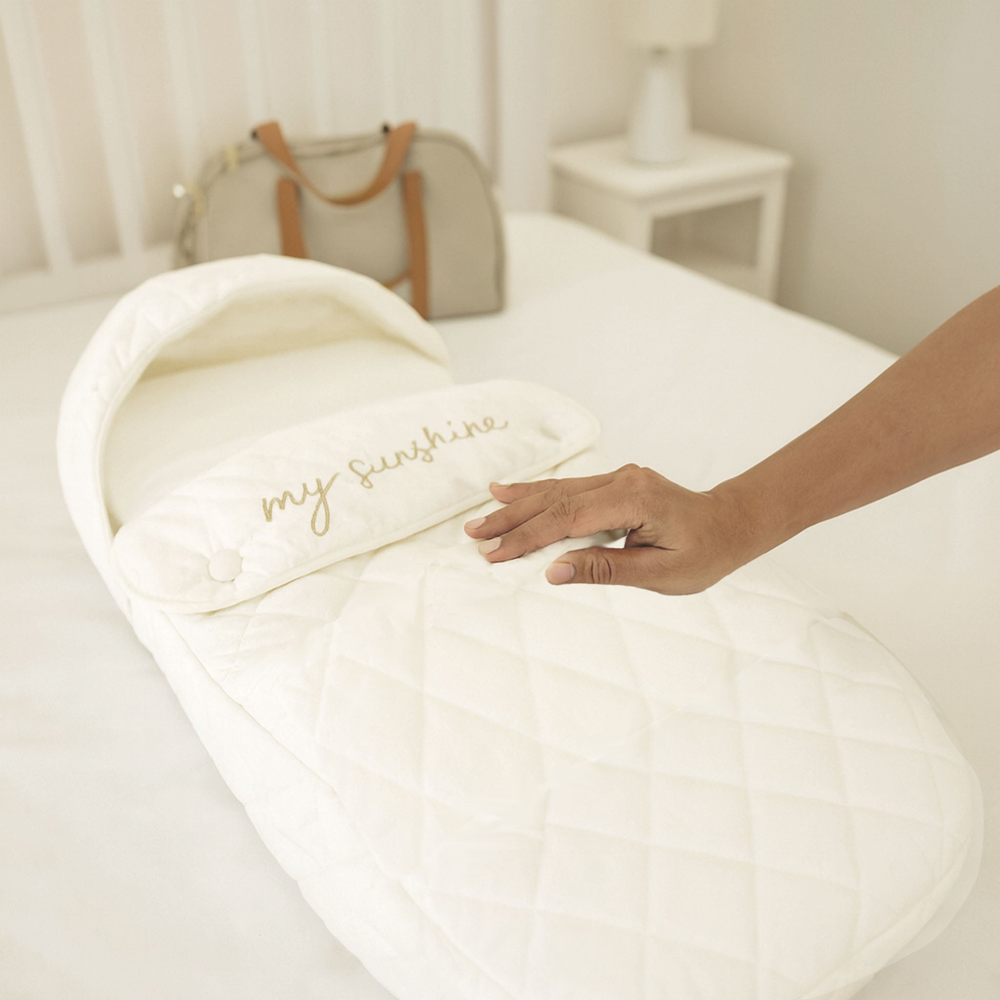 Crafted from 100% organic cotton, the nest features a soft quilted exterior and a smooth interior lining that’s gentle on delicate skin. With a breathable, padded structure and snug fit, it helps babies rest peacefully while staying comfortably swaddled.