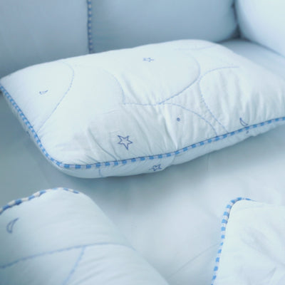 Tulo Baby Bedding Set, premium cotton baby bedding which includes pillow and bolster set and fitted sheet. Add a quilt/dohar and a bumper to make a complete bedding set. Soft,breathable and safe for newborns. Perfect for cozy sleep in cots and cribs.Soft,breathable, and safe for newborns.