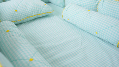 TULO BABY CRIB BUMPER – TEAL GINGHAM